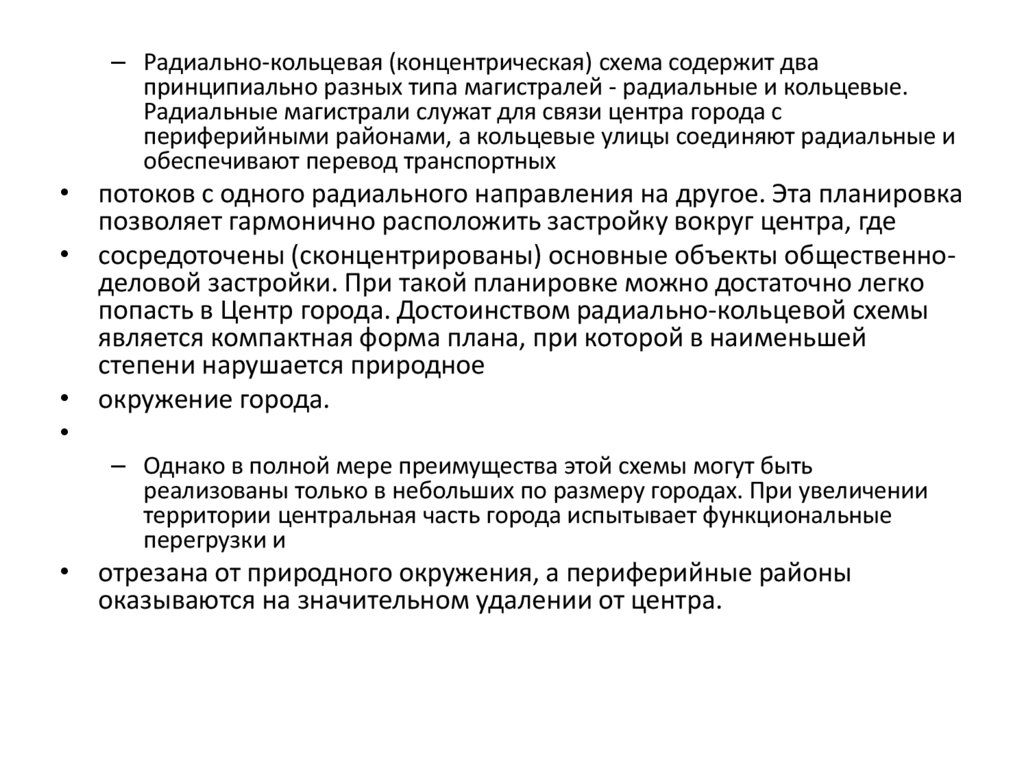 композиционных осей плана города. Радиально-кольцевая структура города