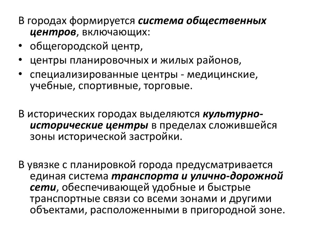 В городах формируется система общественныхцентров, включающих: