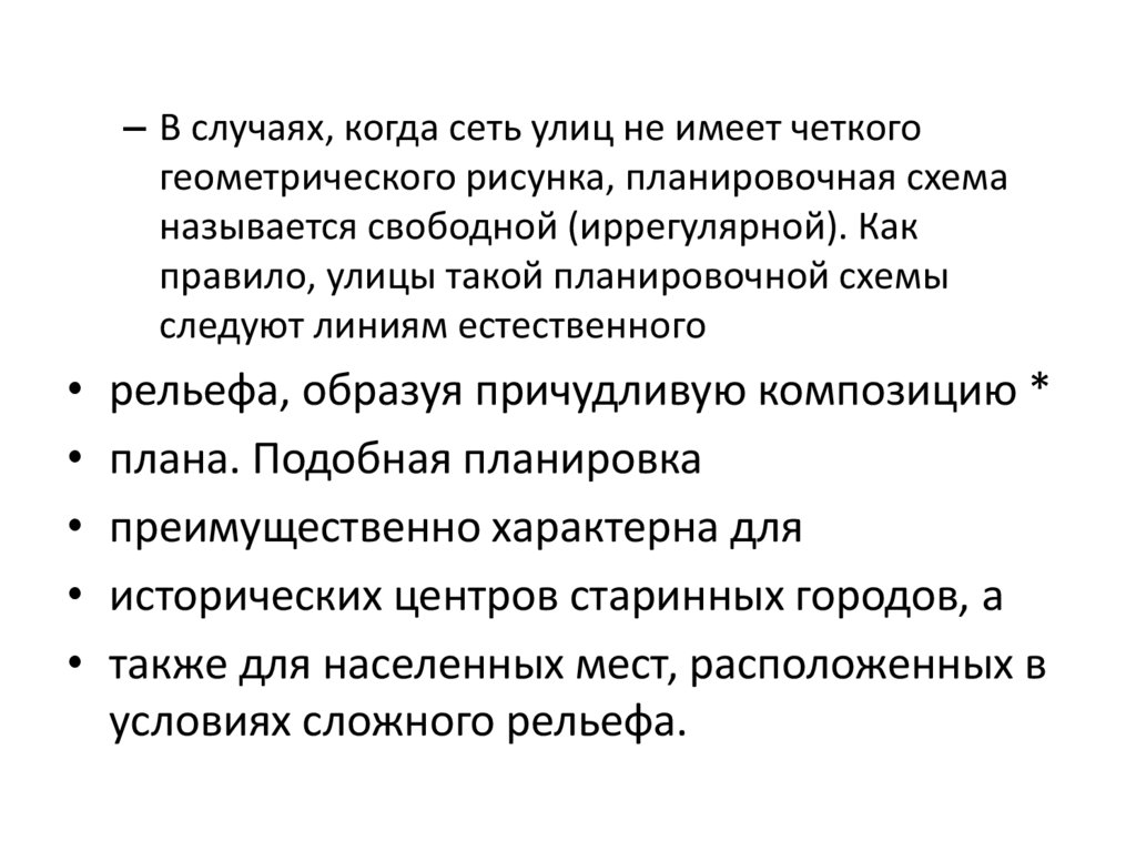 – В случаях, когда сеть улиц не имеет четкогогеометрического рисунка, планировочная схема