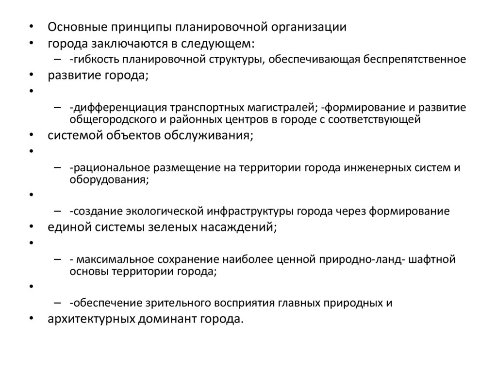 • Основные принципы планировочной организации• города заключаются в следующем: