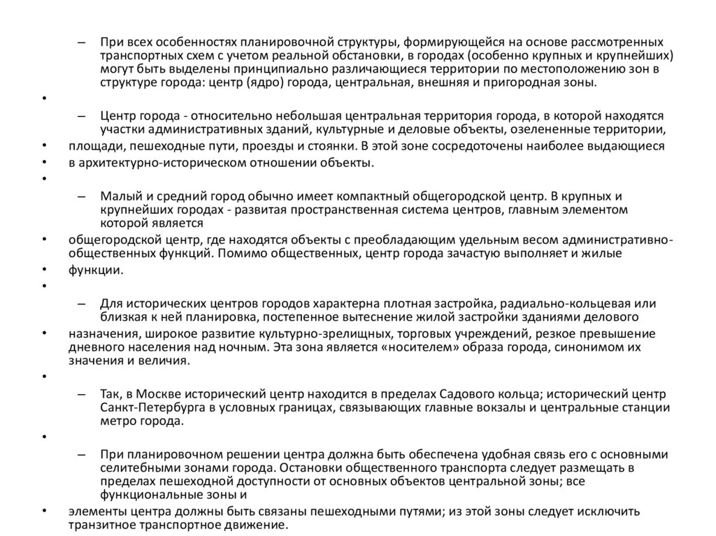 структуре города: центр (ядро) города, центральная, внешняя и пригородная зоны.