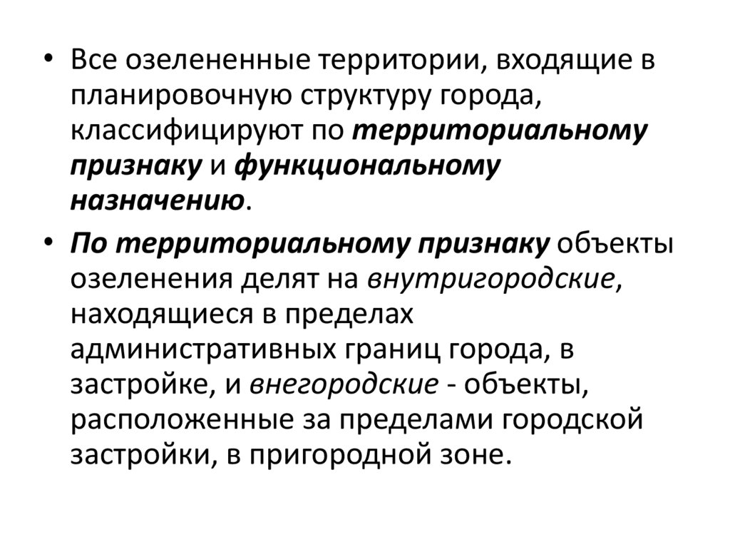 • Все озелененные территории, входящие впланировочную структуру города,