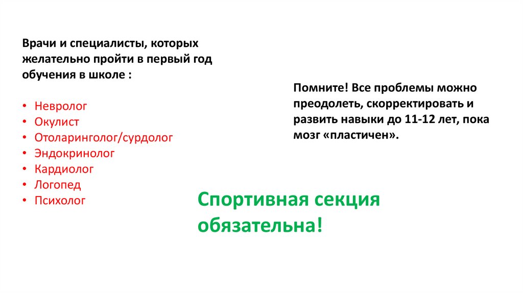 Врачи и специалисты, которыхжелательно пройти в первый год
