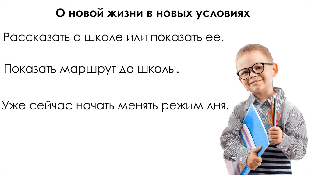 О новой жизни в новых условияхРассказать о школе или показать ее.