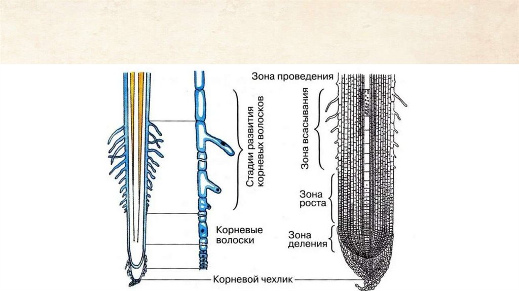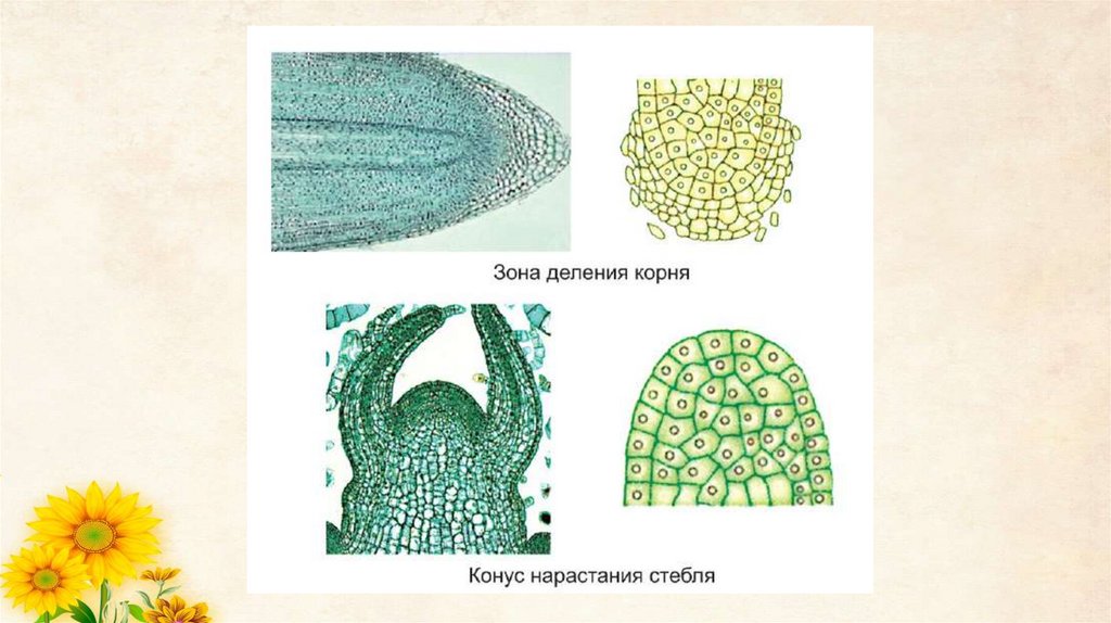 1. Зона деленияf: увеличение кол-ва клеток для роста корня в длину
