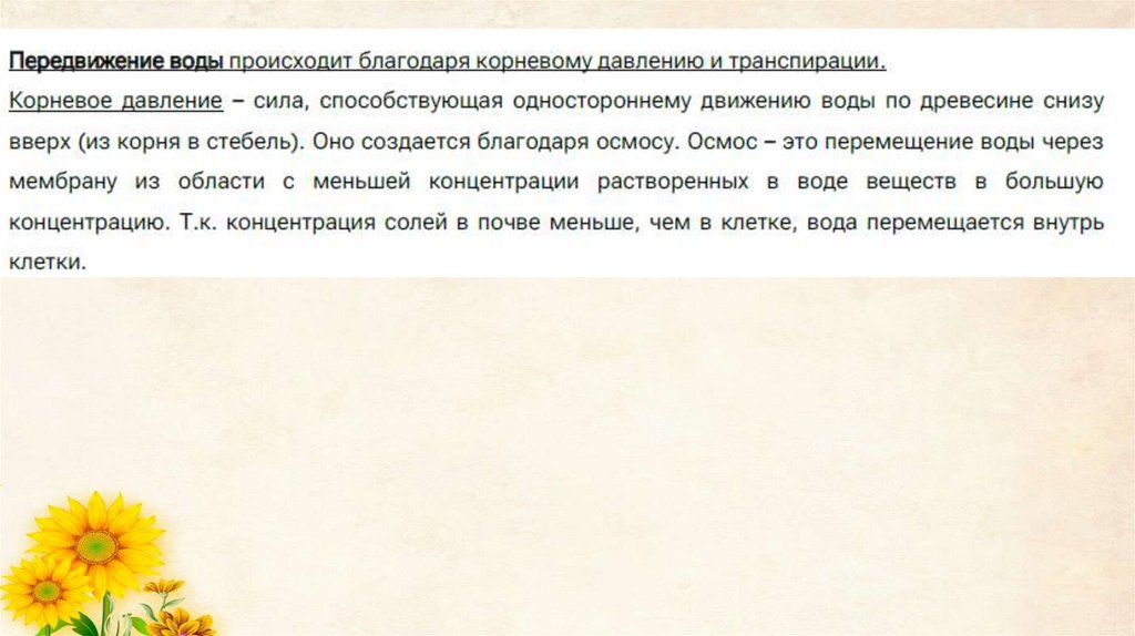 • проводит воду с растворёнными в ней минеральными иорганическими веществами