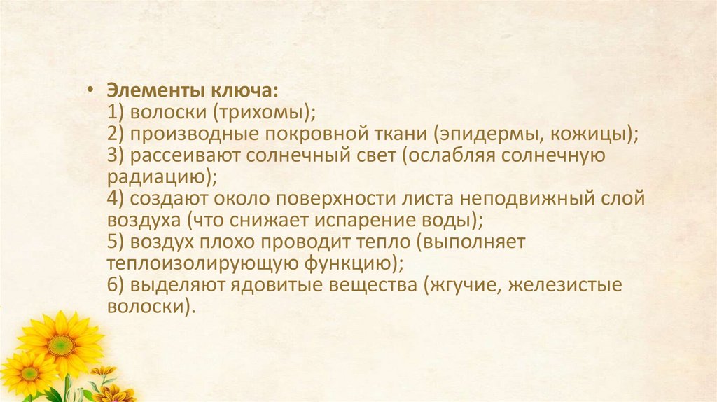 Большое количество волосков (трихом) в эпидерме – сохраняет влагу