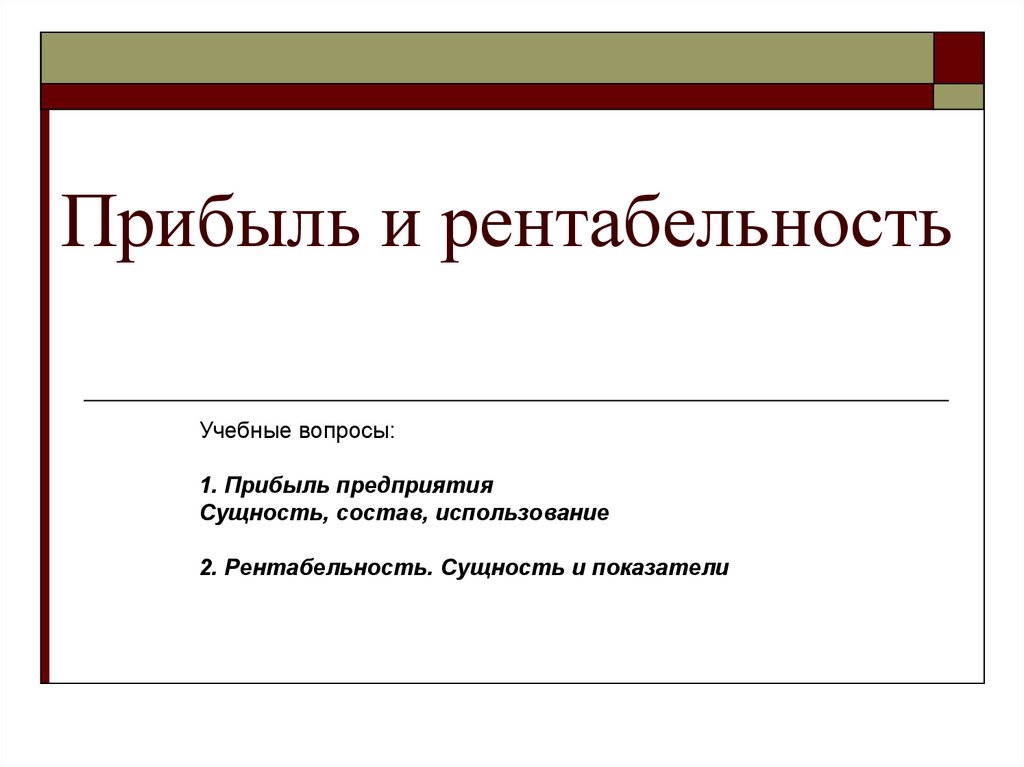ПРИБЫЛЬ и РЕНТАБЕЛЬНОСТЬ