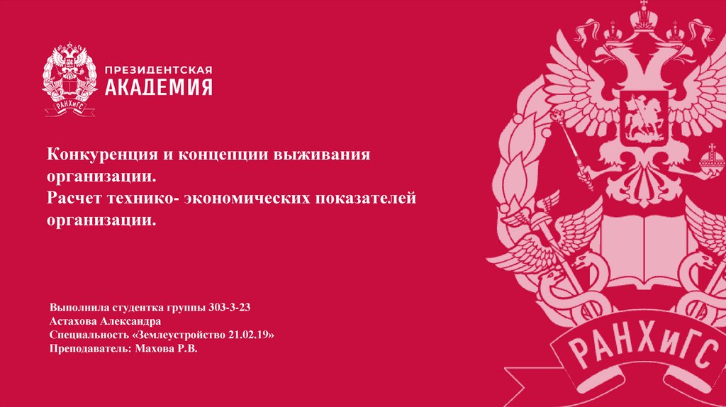 Целью курсовой работы является изучение конкуренции и концепций выживания организации, а также расчёт технико-экономических показателей ООО