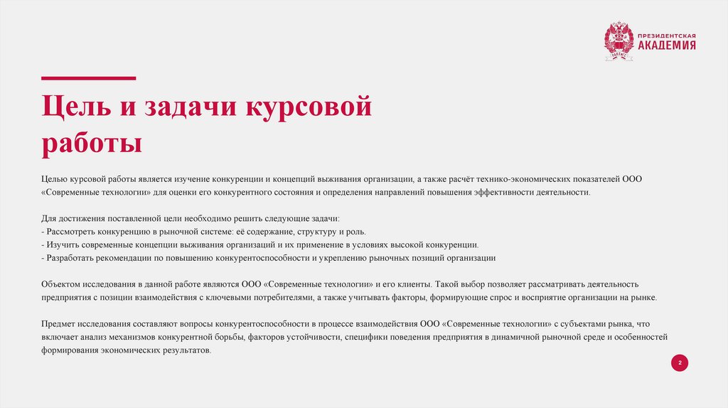 - Изучить современные концепции выживания организаций и их применение в условиях высокой конкуренции.