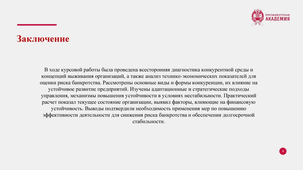 концепций выживания организаций, а также анализ технико-экономических показателей для
