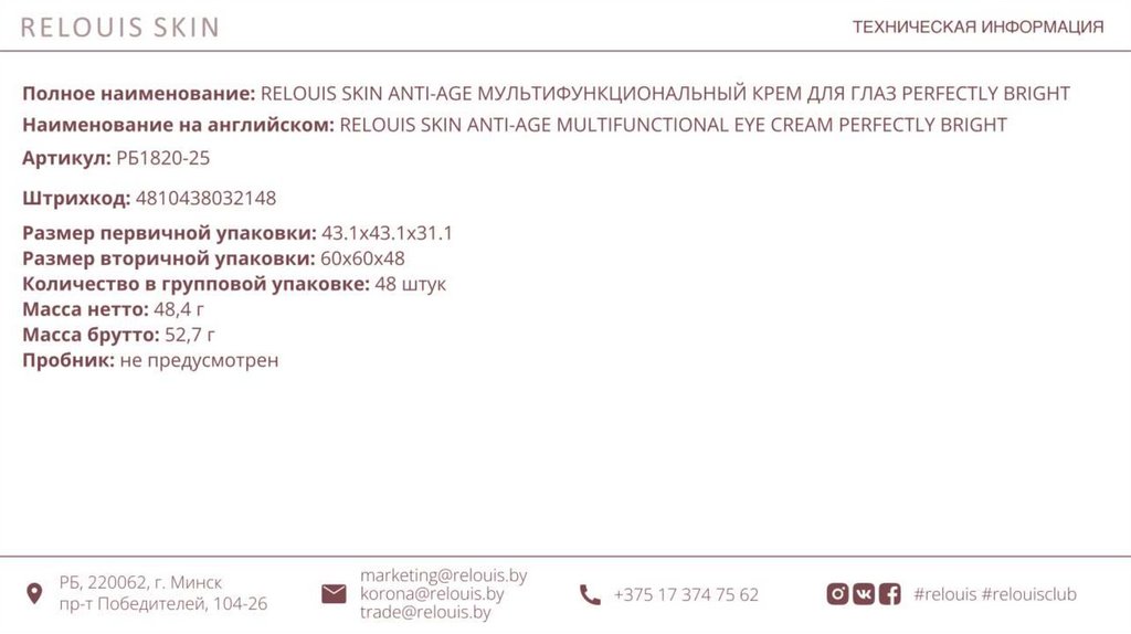 Релуи RELOUIS-SKIN-ANTI-AGE-Мультифункциональный-крем-для-глаз-PERFECTLY-BRIGHT