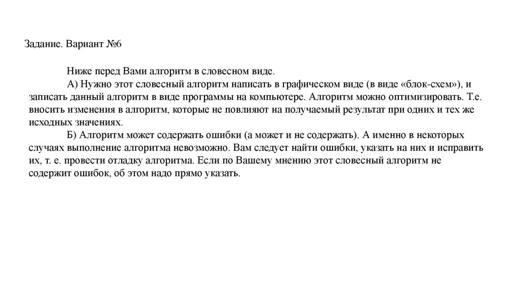 Задание. Вариант №6Ниже перед Вами алгоритм в словесном виде.