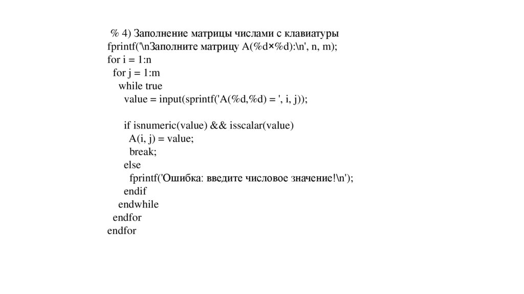 % 4) Заполнение матрицы числами с клавиатурыfprintf('\nЗаполните матрицу A(%d×%d):\n', n, m);