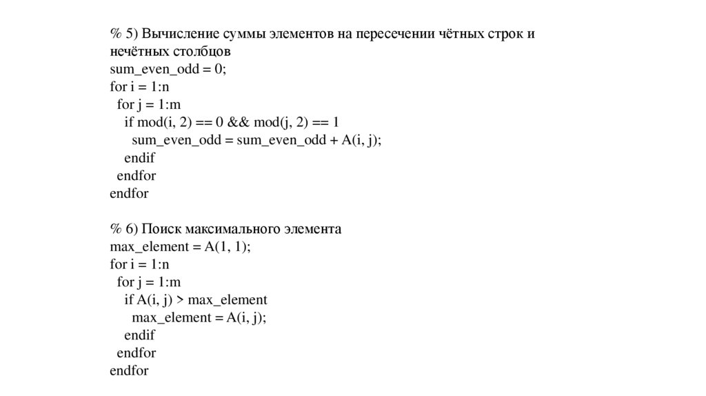 % 5) Вычисление суммы элементов на пересечении чётных строк инечётных столбцов