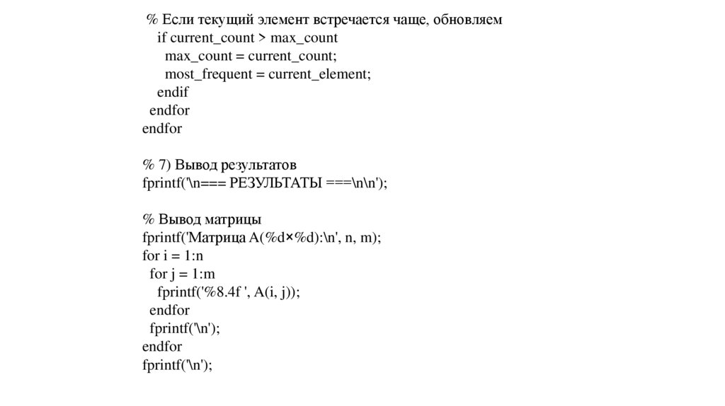 % Если текущий элемент встречается чаще, обновляемif current_count > max_count
