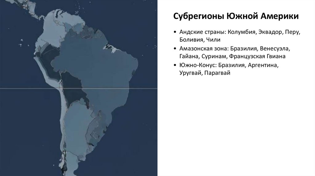 Субрегионы Южной Америки• Андские страны: Колумбия, Эквадор, Перу,