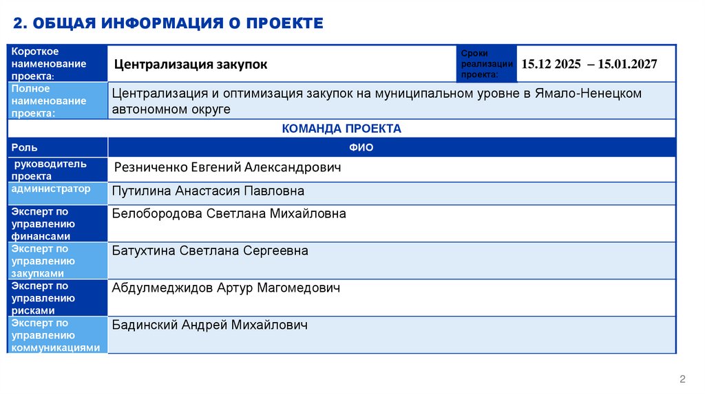 2. ОБЩАЯ ИНФОРМАЦИЯ О ПРОЕКТЕКороткое