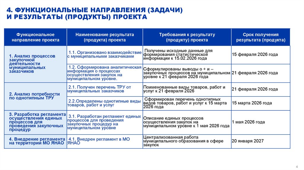 4. ФУНКЦИОНАЛЬНЫЕ НАПРАВЛЕНИЯ (ЗАДАЧИ)И РЕЗУЛЬТАТЫ (ПРОДУКТЫ) ПРОЕКТА
