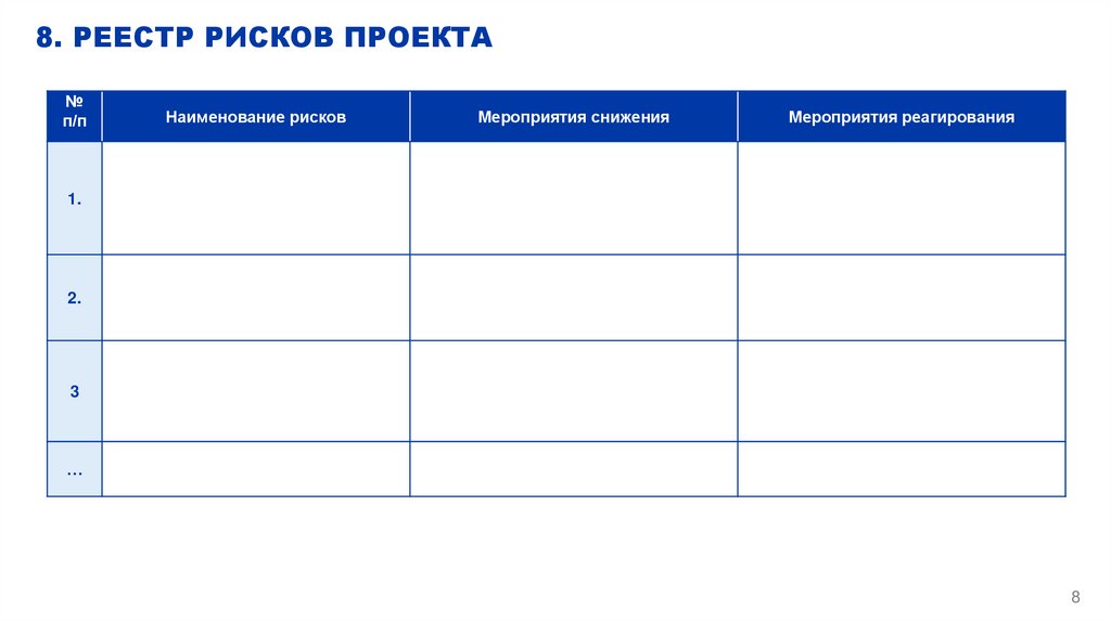 8. РЕЕСТР РИСКОВ ПРОЕКТА№