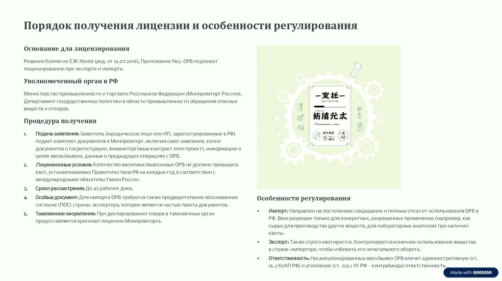 Ответственность: Несанкционированный ввоз/вывоз ОРВ влечет административную (ст.