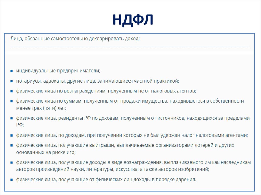 • с физических лиц (НДФЛ, налог на