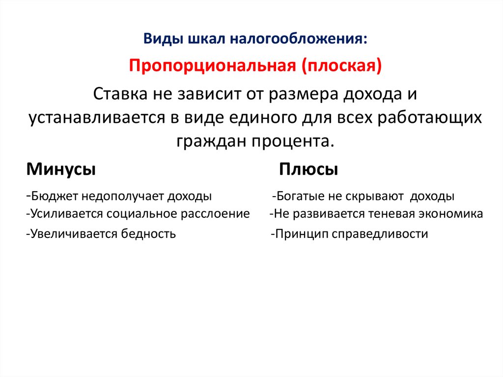 • Справедливость (одинаковая ставка для одинакового уровня доходов