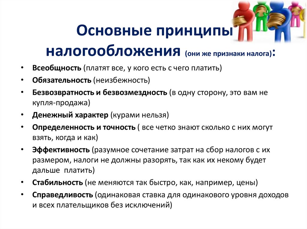 Основные принципыналогообложения (они же признаки налога):