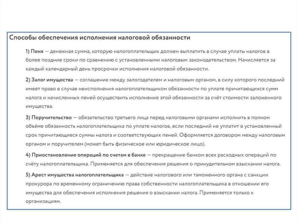 налогов и методов их взимания