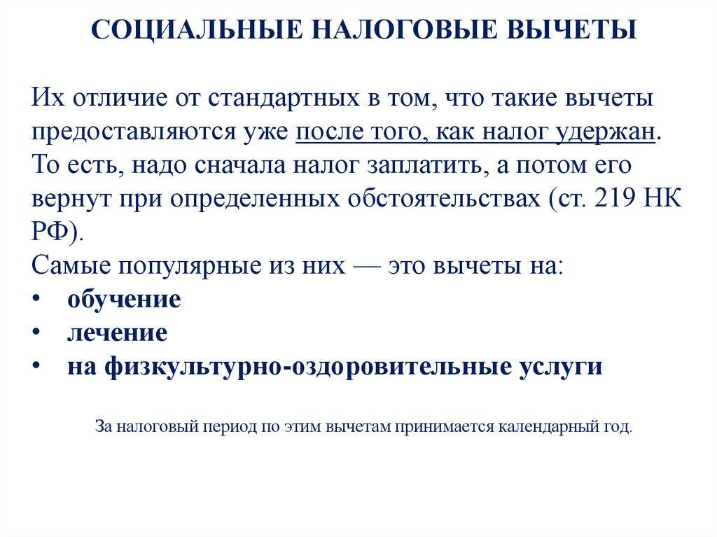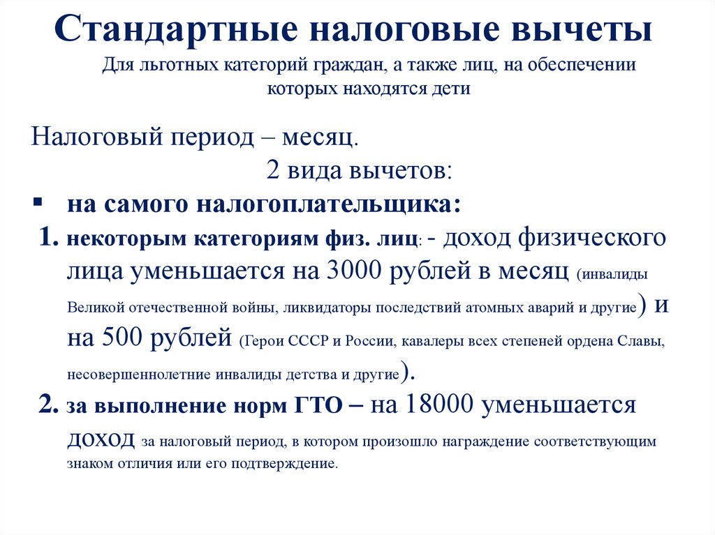 ОСНОВНЫЕ ГРУППЫ НАЛОГОВЫХ ВЫЧЕТОВстандартные
