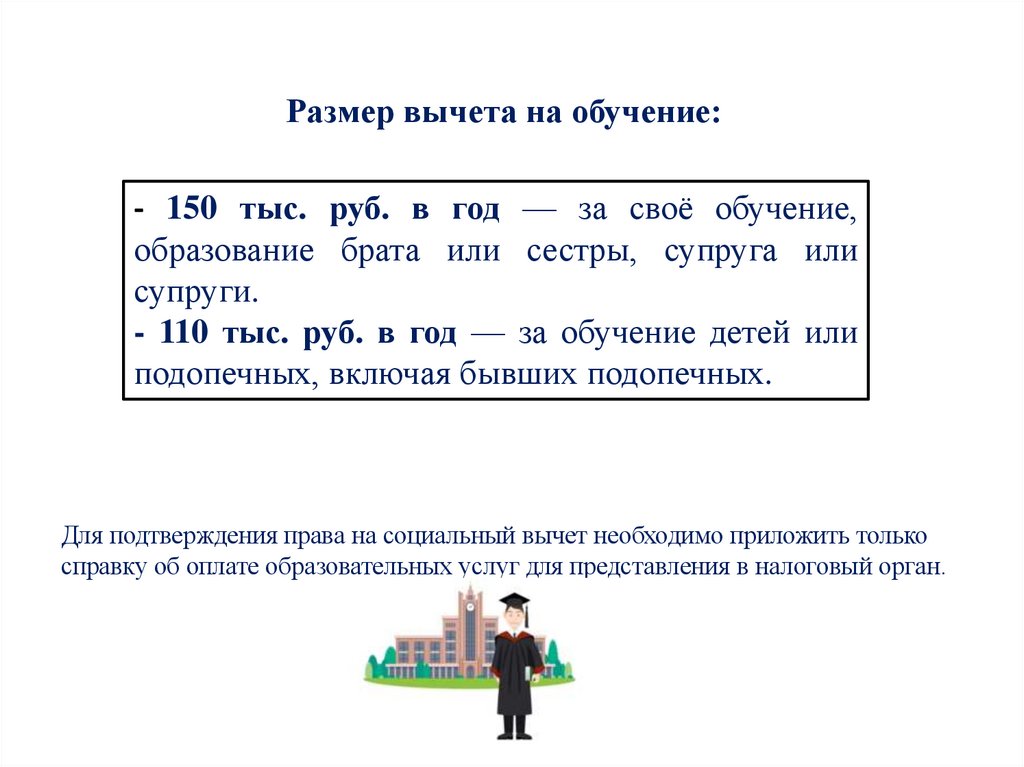 по очной форме: сумма вычета — 6 000 рублей, поскольку ребенок