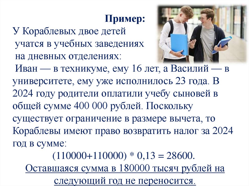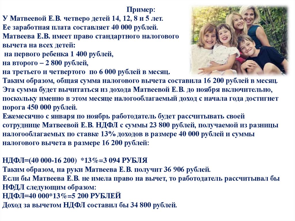 *Налоговый вычет производится на каждого ребенка в возрасте до 18 лет, а также на каждого учащегося очной