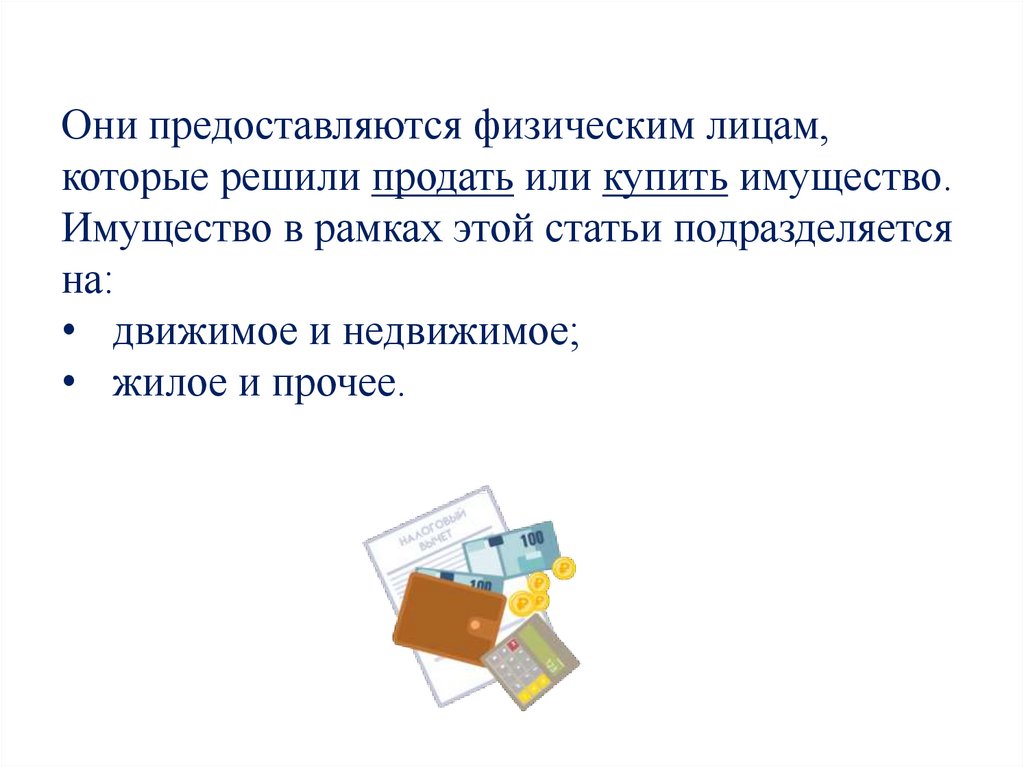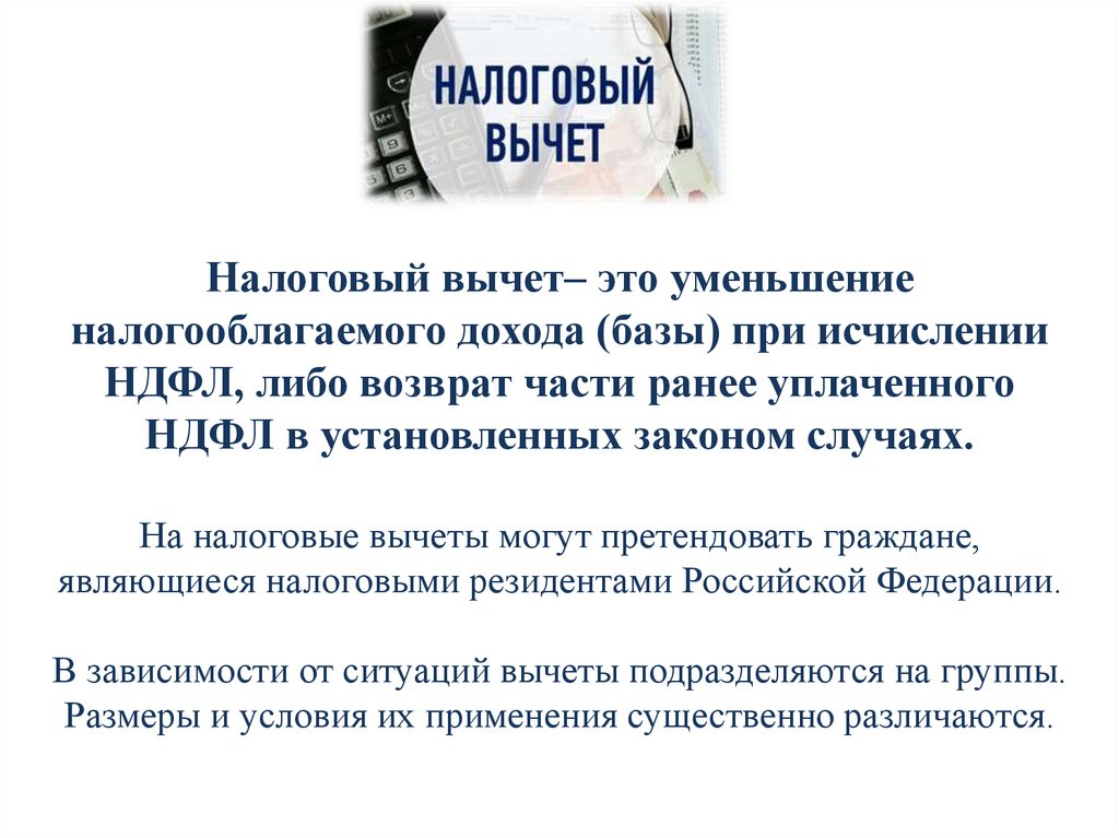В зависимости от ситуаций вычеты подразделяются на группы.