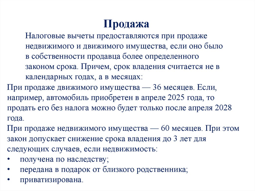 При продаже недвижимого имущества — 60 месяцев. При этом