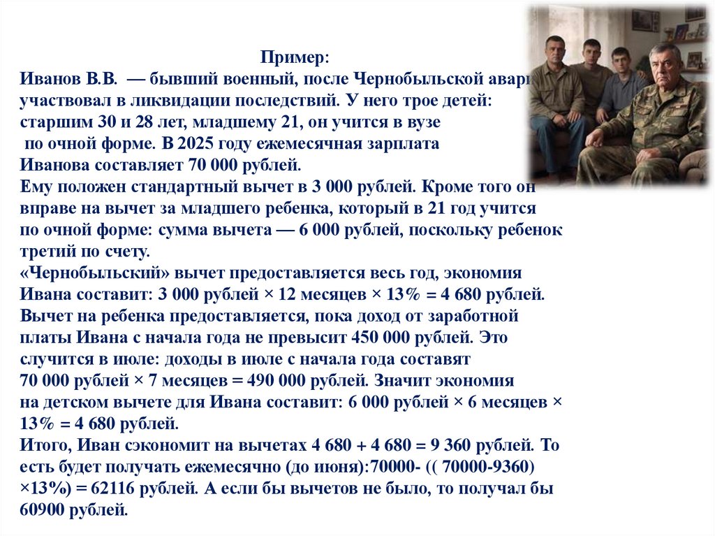 «Чернобыльский» вычет предоставляется весь год, экономия