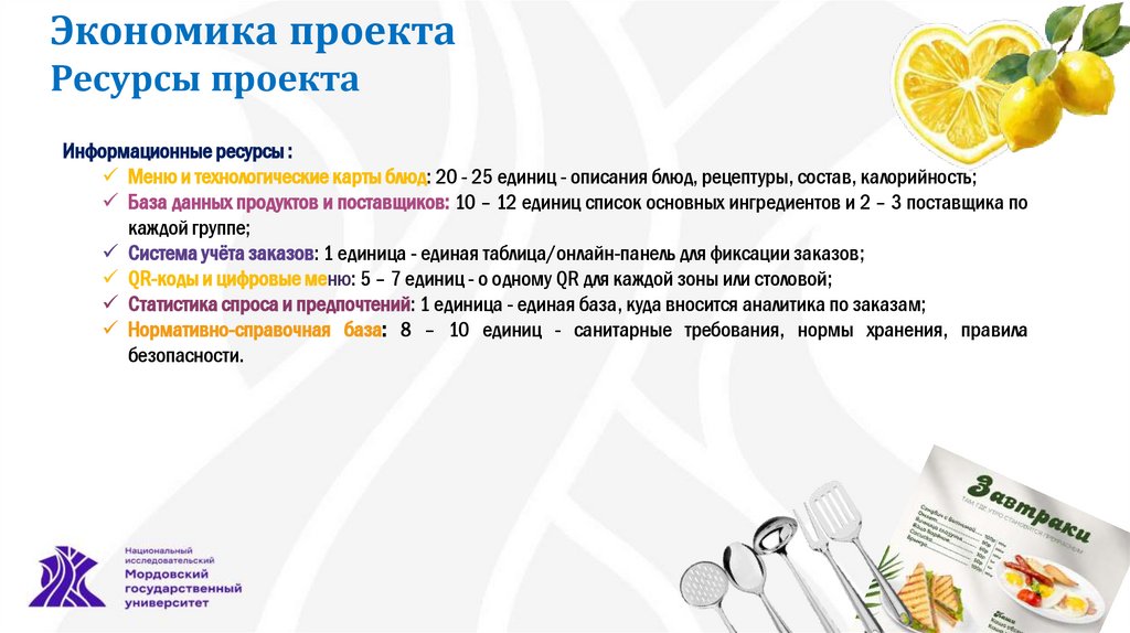 Меню и технологические карты блюд: 20 - 25 единиц - описания блюд, рецептуры, состав, калорийность;