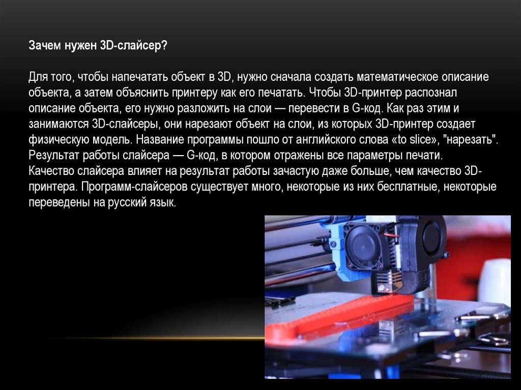 3. Слайсер — это компьютерная программа, подготавливающая для 3Dпринтера цифровую модель объекта для печати. Технология создания объемной