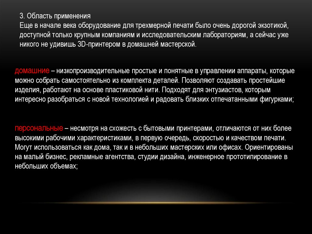 3. Область примененияЕще в начале века оборудование для трехмерной печати было очень дорогой экзотикой,