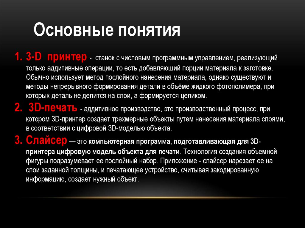 Основные понятия1. 3-D принтер - станок с числовым программным управлением, реализующий
