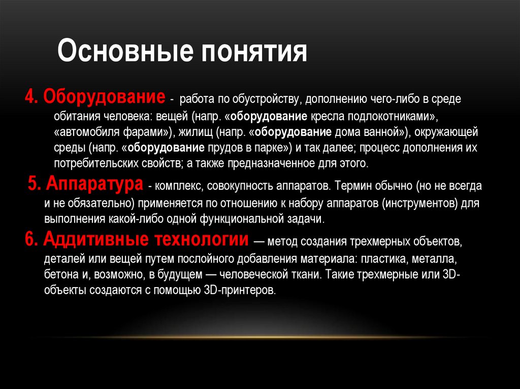 Основные понятия4. Оборудование - работа по обустройству, дополнению чего-либо в среде