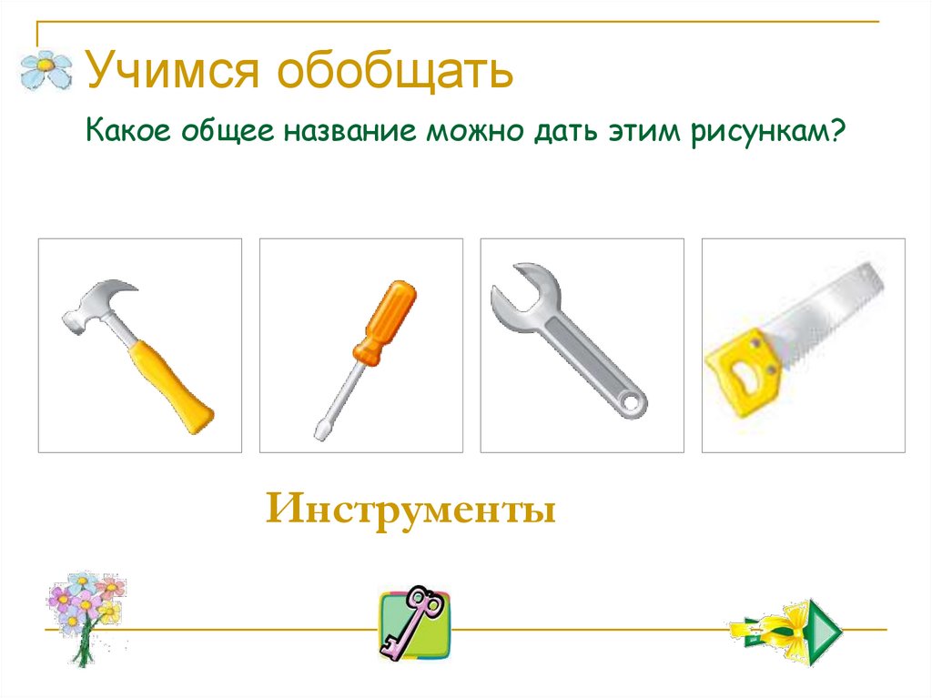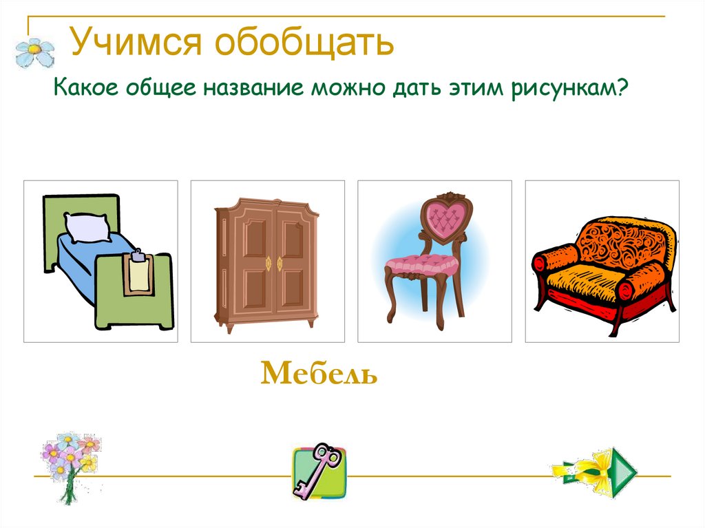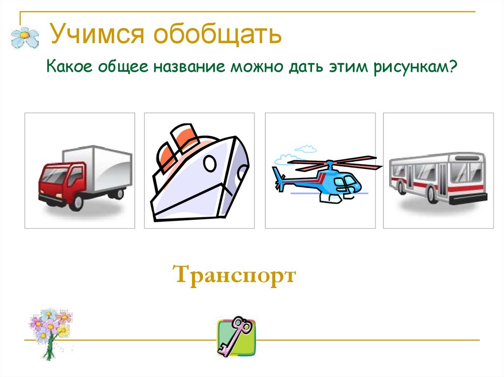 Учимся обобщатьКакое общее название можно дать этим рисункам?