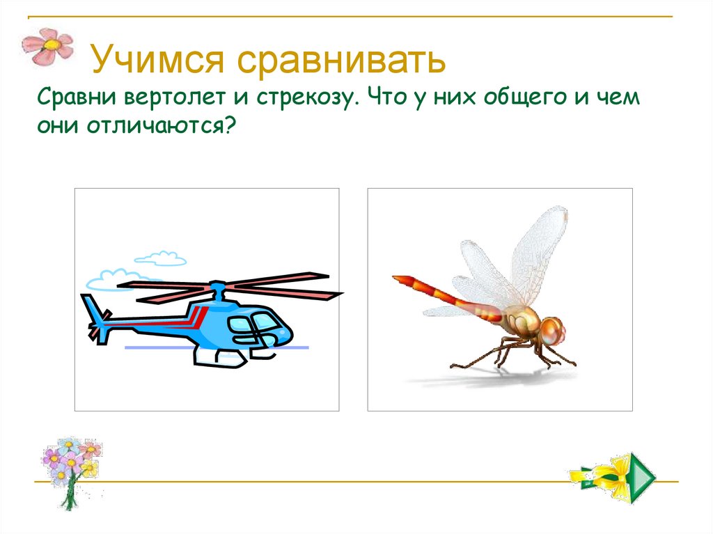 Учимся сравниватьСравни вертолет и стрекозу. Что у них общего и чем