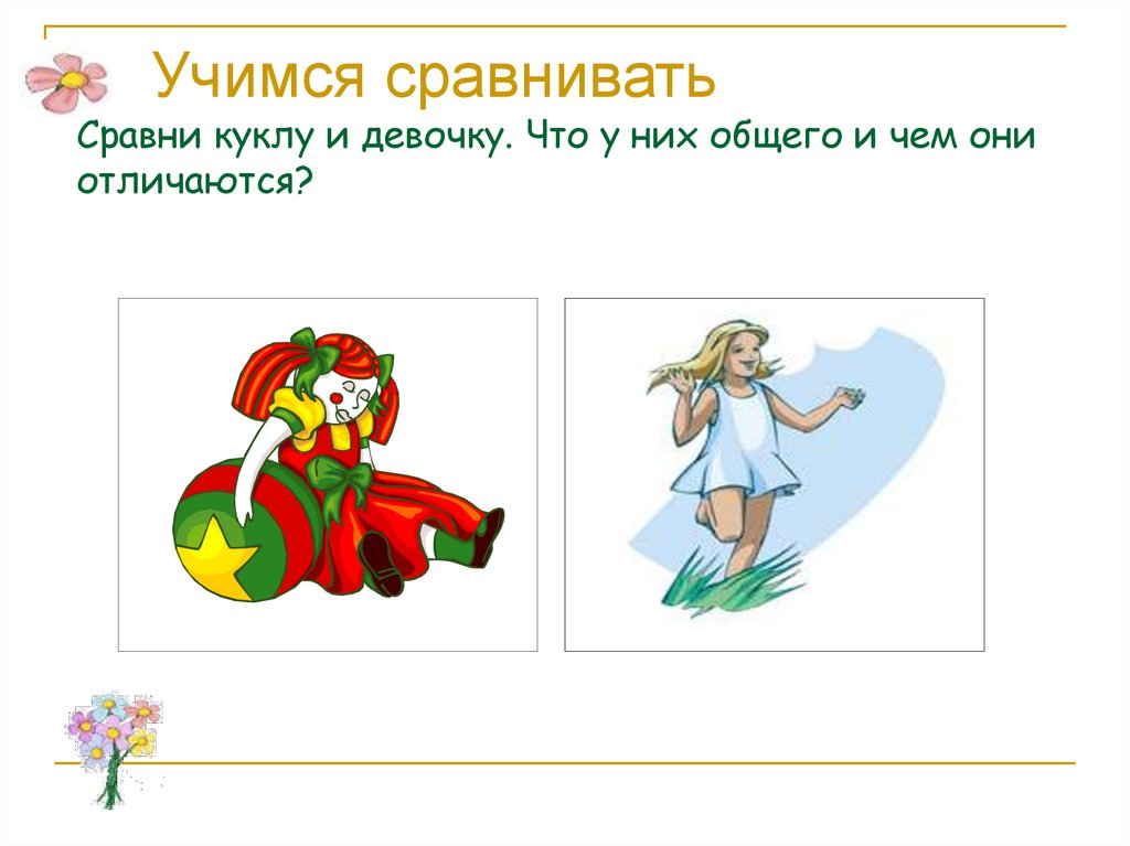 Учимся сравниватьСравни куклу и девочку. Что у них общего и чем они