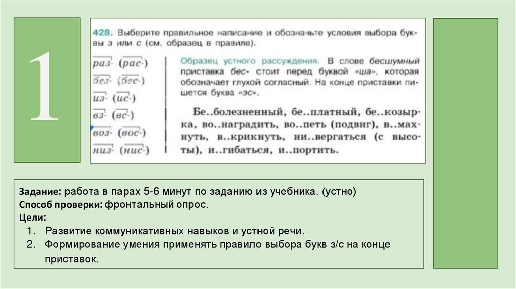 1Задание: работа в парах 5-6 минут по заданию из учебника. (устно)