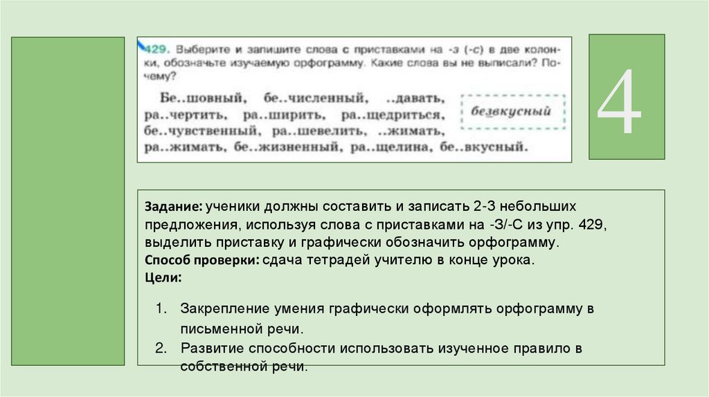предложения, используя слова с приставками на -З/-С из упр. 429,