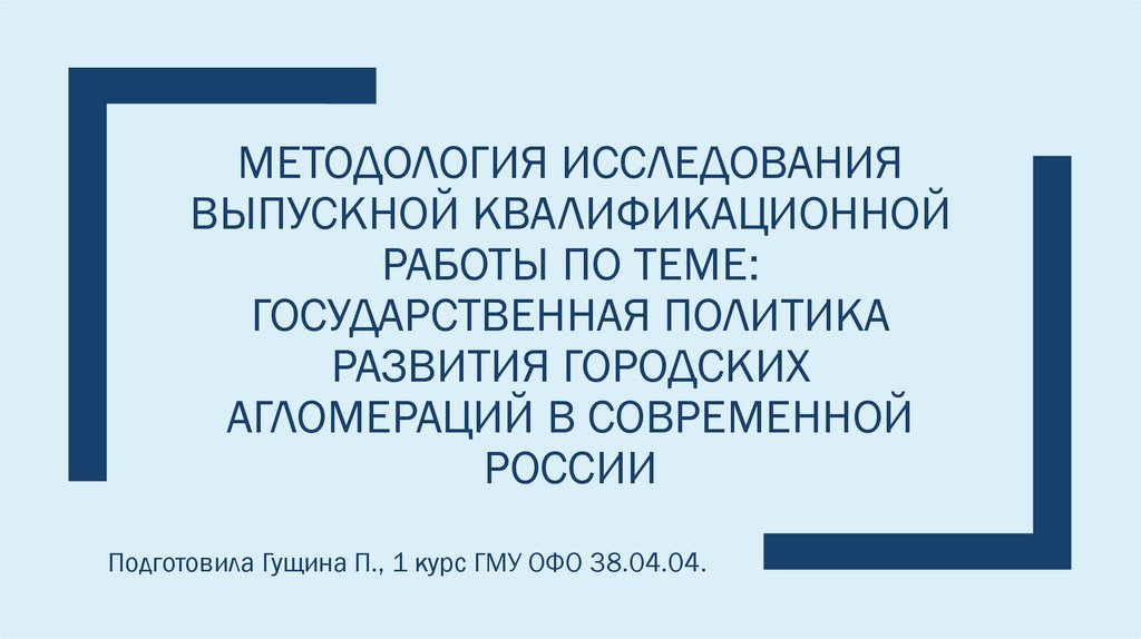 1. МЕТОДОЛОГИЯ ИССЛЕДОВАНИЯ ВЫПУСКНОЙ КВАЛИФИКАЦИОННОЙ РАБОТЫ ПО ТЕМЕ: ГОСУДАРСТВЕННАЯ ПОЛИТИКА РАЗВИТИЯ ГОРОДСКИХ АГЛОМЕРАЦИЙ В
