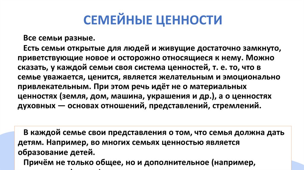 СЕМЕЙНЫЕ ЦЕННОСТИВсе семьи разные.