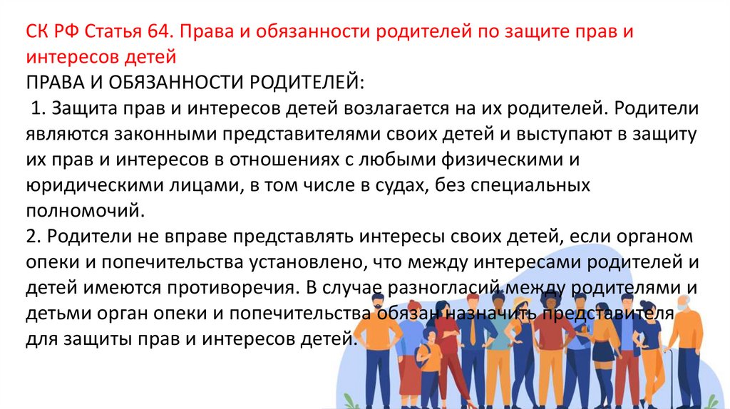 СК РФ Статья 64. Права и обязанности родителей по защите прав иинтересов детей