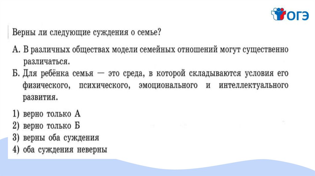 3. Семья- это объединение людей, основанное на кровном родстве, браке или усыновлении, которое связано общностью бюджета, быта и