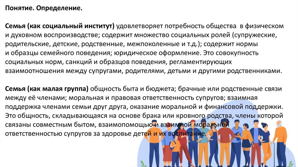 Понятие. Определение.Семья (как социальный институт) удовлетворяет потребность общества в физическом